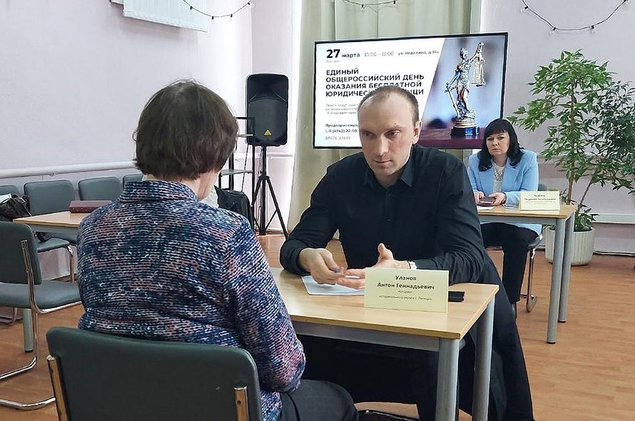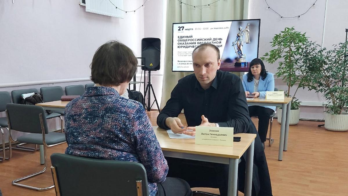 27 марта в регионе прошел первый в текущем году общероссийский день бесплатной юридической помощи. Консультации провели адвокаты — члены Ассоциации юристов России, представители прокуратуры, Социального фонда России, аппарата Уполномоченного по правам человека в Липецкой области, нотариусы, практикующие юристы. Правовую помощь оказывал нотариус города Липецка Антон Уланов и представители Липецкой областной нотариальной палаты.