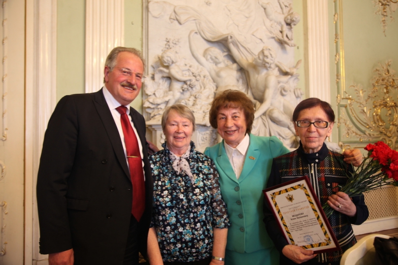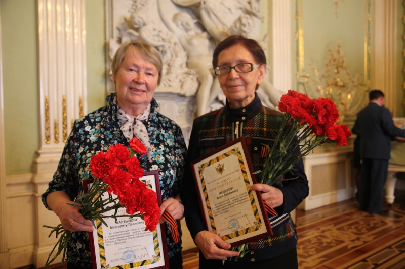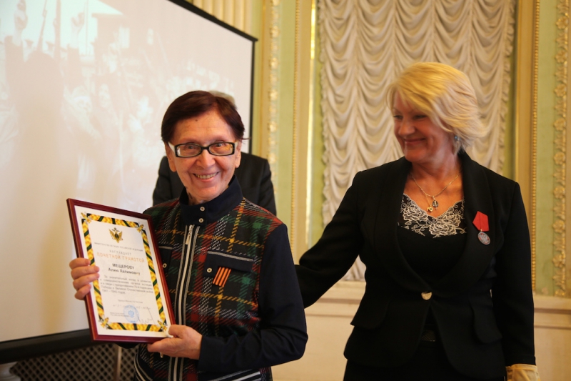 После поздравлений и слов благодарности ветеранам, началась церемония награждения. Ведомственные награды ветеранам юстиции вручал начальник Главного управления Минюста России по Санкт-Петербургу Владимир Лукьянов. Почетные грамоты были вручены ветеранам-нотариусам Галине Юровой, Алие Мещеровой, Маргарите Мартыновой. Маргарита Павловна, пережившая страшную блокаду, работает частнопрактикующим нотариусом до сих пор.